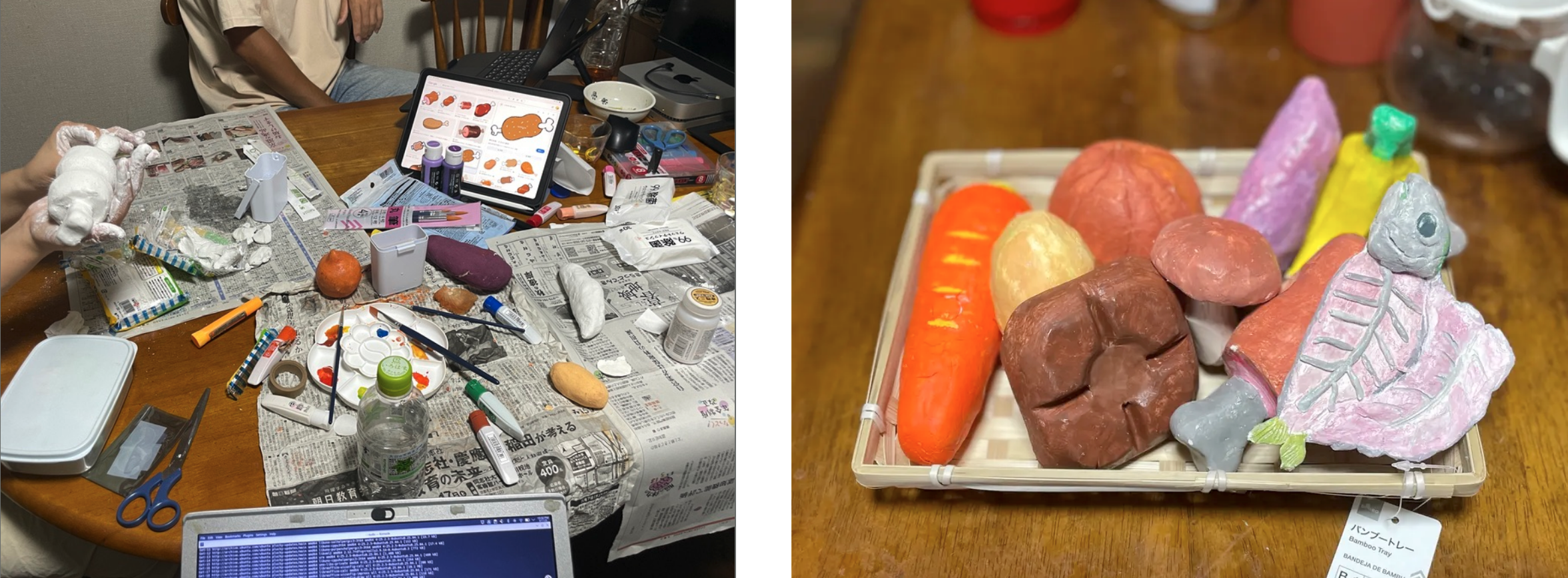 また食品サンプルについても予算が限られていたので既製品を買うことはできず、粘土をこねて自分たちで一から作りました。(途中から粘土がうまいローバーが準備に加わり、如実に食品サンプルのクオリティが上がりました笑)